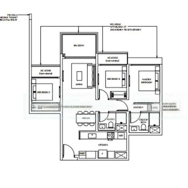 3-Bedroom + Study 1163 / 1173 / 1184 sf