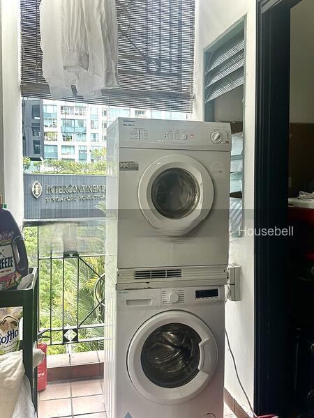 • Essential appliances like washing machine, dryer, and fridge provided
